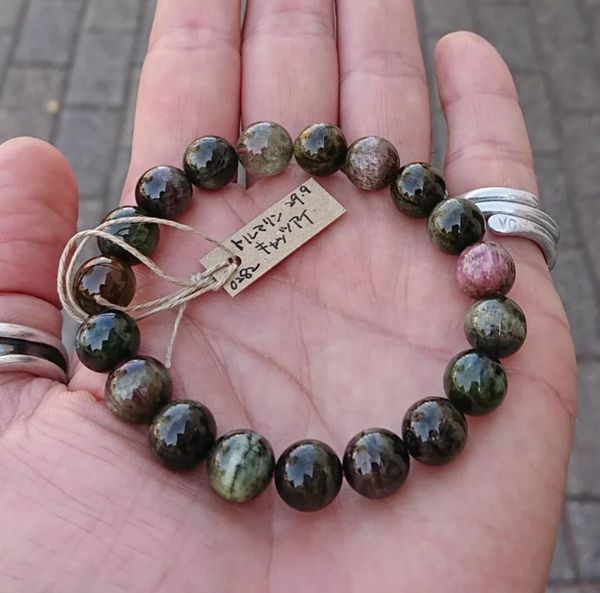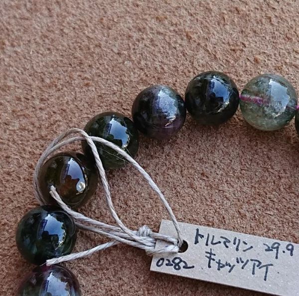 | トルマリンキャッツアイのブレスレット 天然石のブレスレットの中でも人気の 『トルマリン』 こちら、グリーンベースのマルチカラー シャトヤンシー(キャッツアイ効果)が素敵な一品となっております 【要確認】 天然石には内包物、インクルージョンがあり、多少の凹みやキズがある場合がございます。それらも全て含めまして、その石の風合いとご理解いただけると幸いです。 撮影時の光加減や液晶の環境により、色目が実物と多少異なる場合がございます。 |