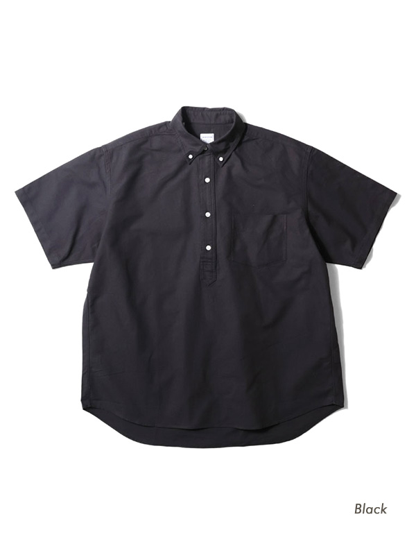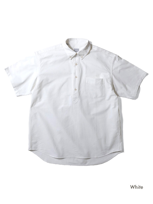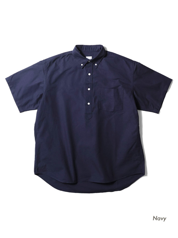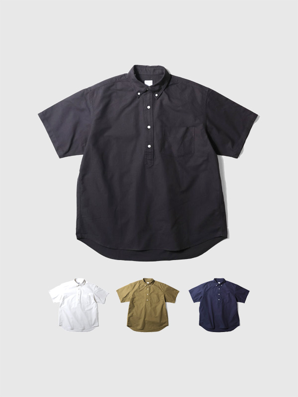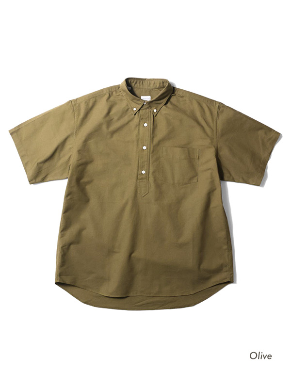 USコットンライクの硬く乾いた質感のオックスフォード生地を使用した半袖のプルオーバーシャツ。