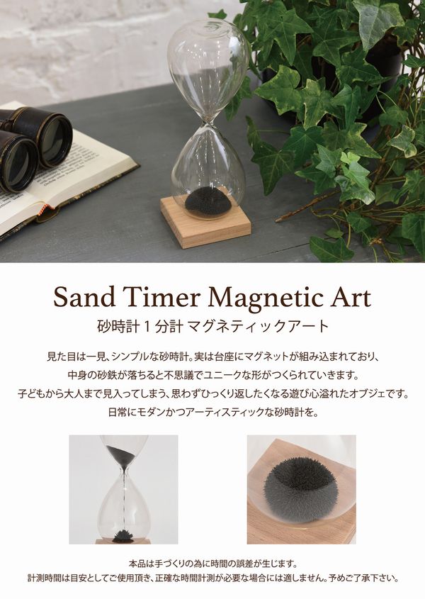 | Fun Science 砂時計1分計 マグネティックアート60秒、時を忘れる砂時計 砂時計は砂の代わりに砂鉄、台座には磁石が組み込まれており、砂が落ちて作り出す形に思わず見とれます。 忙しい一日の中の、ほんの60秒。意外とゆっくり時は過ぎます。 60秒、時を忘れて見ませんか。 60秒、時間は測れます。思わず見てしまうので他のことはできませんが。 |