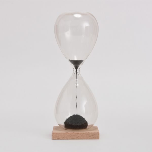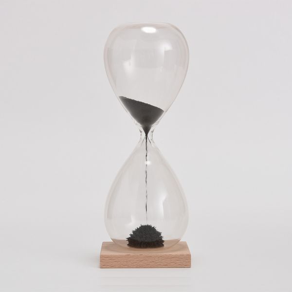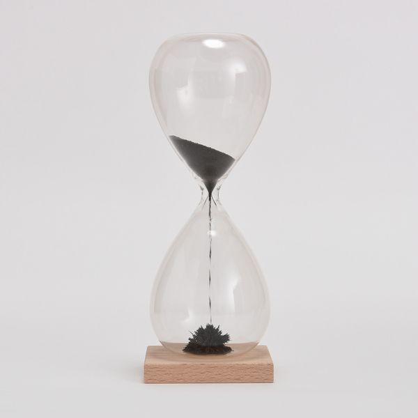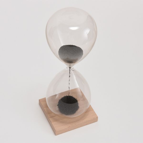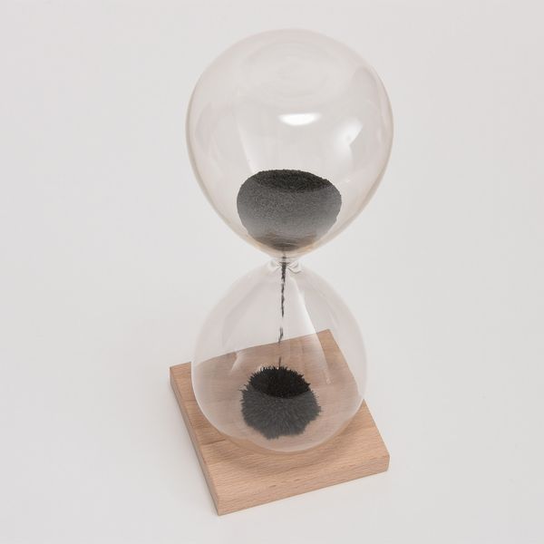 砂時計は砂の代わりに砂鉄、台座には磁石が組み込まれており、砂が落ちて作り出す形に思わず見とれます。