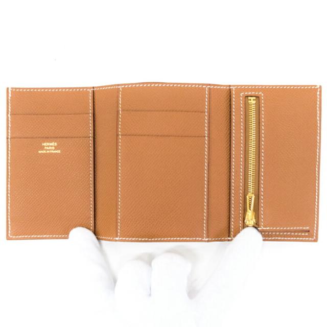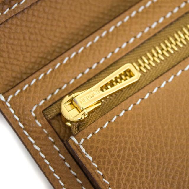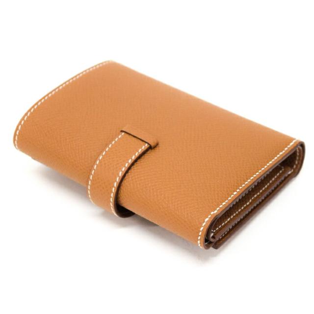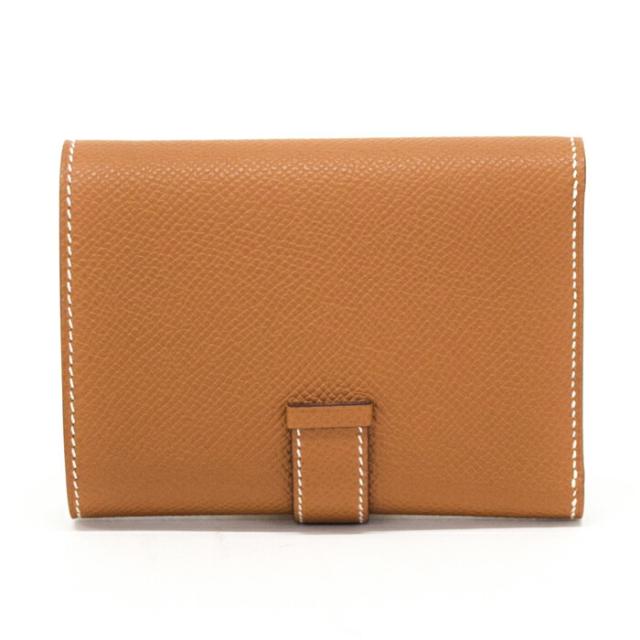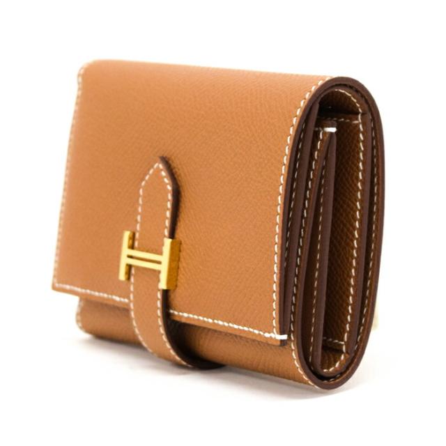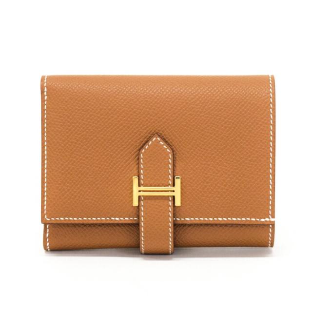 【Sランク】 エルメス HERMES ベアン コンビネ エプソン (レザー) GD金具 W刻印 2024年 三つ折り財布 かぶせ蓋 コンパクトウォレット H金具 ゴールド (ライトブラウン) 正規品 新品同様 中古 mbl26006