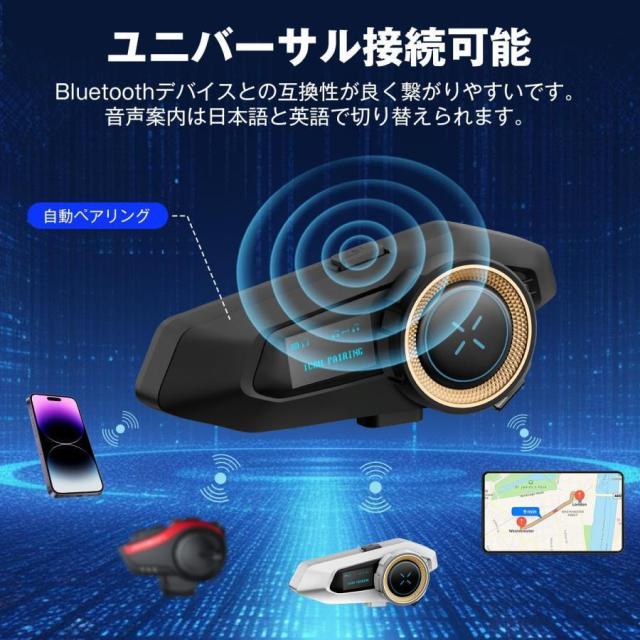 【2025最新バージョン】バイクインカム Bluetooth 5.3 液晶表示 バイク用 最大10人同時通話 最大通話距離2000m IP6防水 インカム 長持続時間 日本語音声案内対応