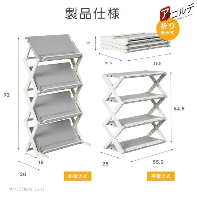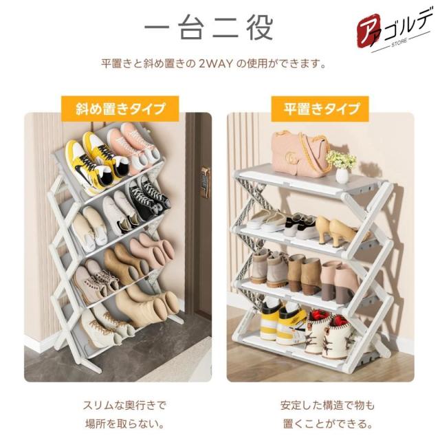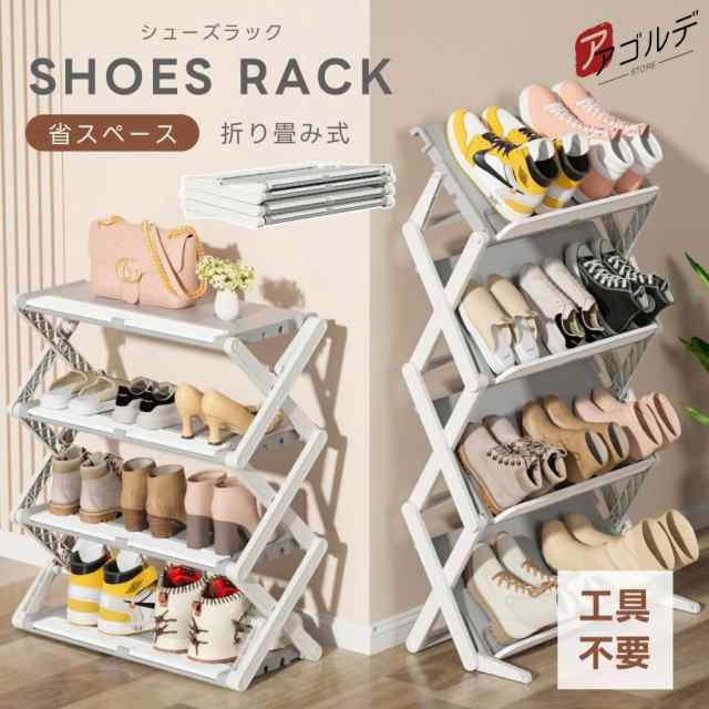 シューズラック スリム 省 スペース 折りたたみ 4段 3段 おしゃれ 大容量 軽量 靴箱 靴棚 靴 収納 下駄箱 靴収納 靴置き 玄関 薄型 斜め