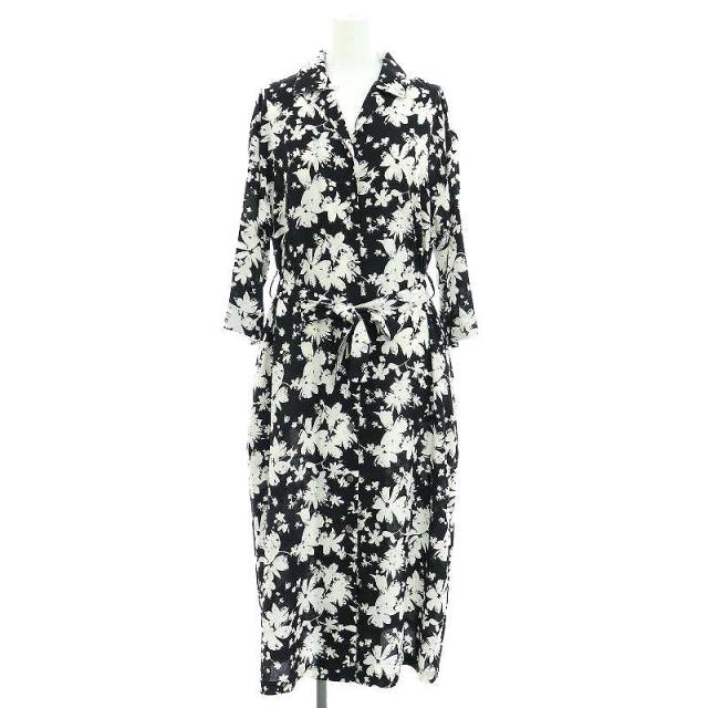 【中古】ブランブルーミニュイ 22SS BIG FLOWER DRESS ドレス ワンピース 花柄 フロントボタン ロング 七分袖 F 黒 白
