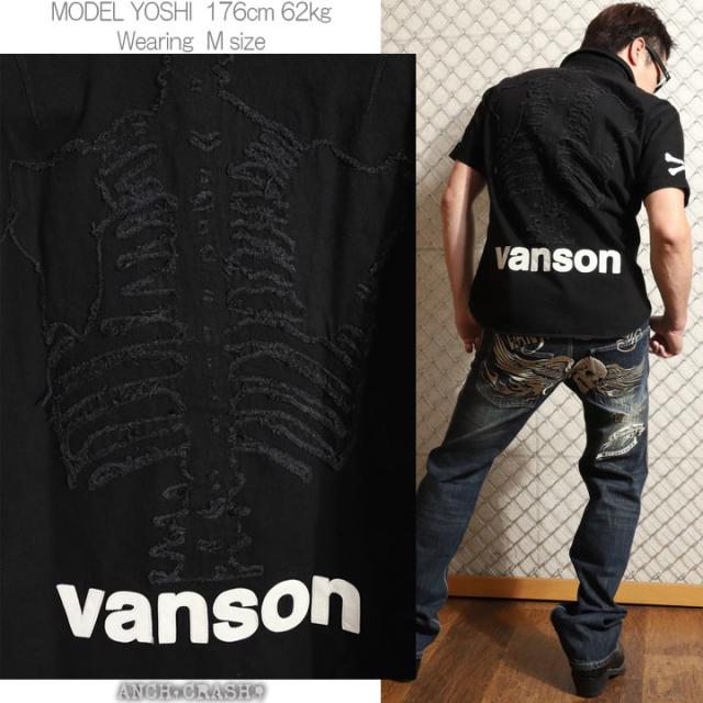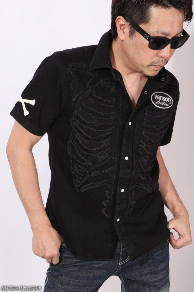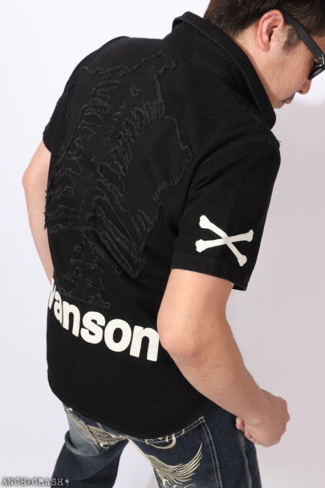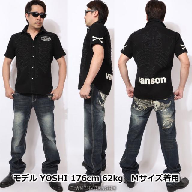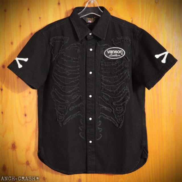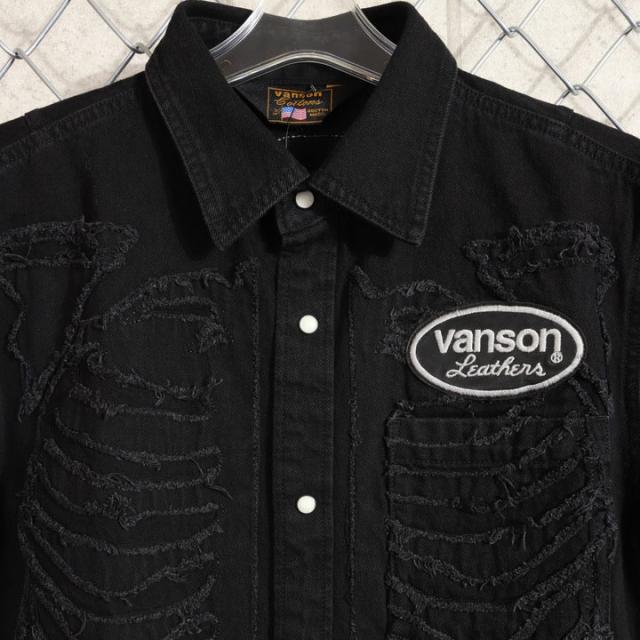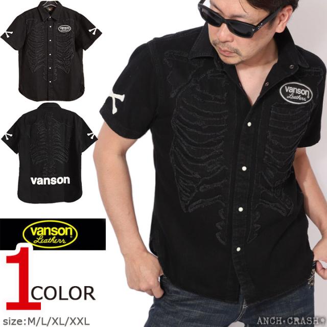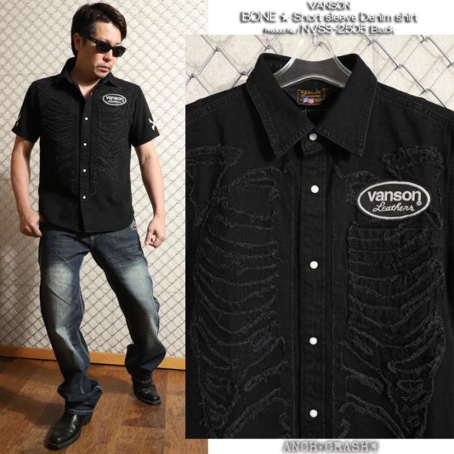 XXLサイズのみラスト1点もってけ価格!在庫限りセール SALE 30%off VANSON ボーン 半袖 デニムシャツ (NVSS-2505) 【送料無料】バンソン 刺繍 レザー ワッペン 叩き付け ご奉仕品の為返品交換不可