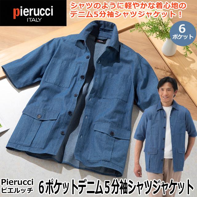Pierucci(ピエルッチ)6ポケットデニム5分袖シャツジャケット メンズ 綿100% コットン 春夏秋 アウター 敬老の日 プレゼント