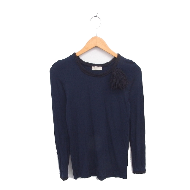 【中古】キワシルフィー KiwaSylphy カットソー Tシャツ ボートネック 薄手 フリンジ ボートネック 長袖 ネイビー 紺