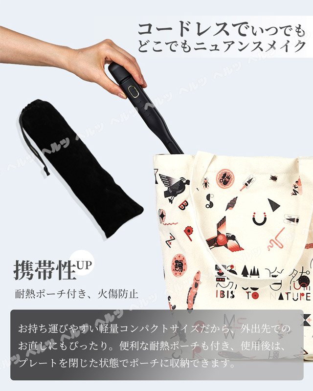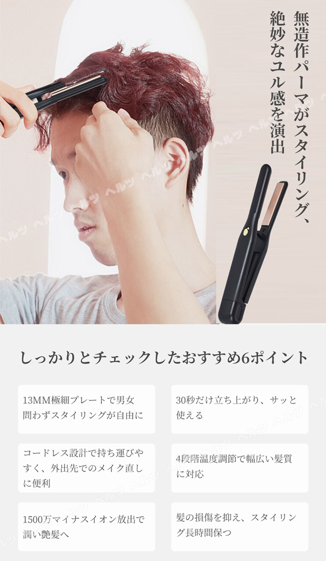 「収納袋付」ヘアアイロン メンズ ストレート パーマ両用 2WAY スリムプレート 幅13mm ヒートアイロン コードレス コンパクト ポータブル ミニヘアアイロン 携帯 持ち運び ストレートアイロン マイナスイオン搭載 軽量 4段階温度調整 やけど防止 耐熱ポーチ付き 持ち運び便利 軽量 家庭 男女兼用 母の日 母の日 ギフト