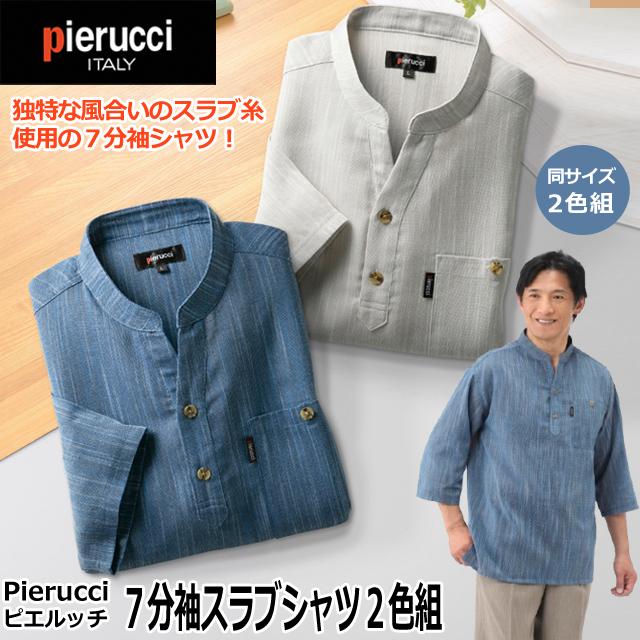 Pierucci(ピエルッチ)7分袖スラブシャツ2色組 メンズ 綿混 春夏秋 スキッパー襟 ネイビー ベージュ 敬老の日 プレゼント