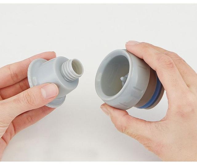 2種類ある飲み口を付け替えて、直接口を付けて飲めるダイレクト飲みタイプと、温かい飲み物もOKのコップ飲みタイプで使い分け!