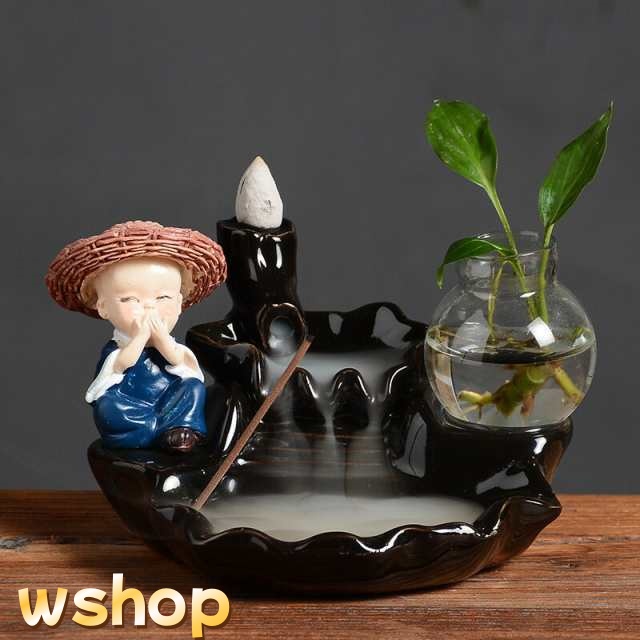 即納OK レビュー高評価 置き物 置物 山水 風水 仏具 インテリア 【wshop 小僧 幻想的 倒流香用 エネルギーワーク 倒流香 かわいい 線香立て おしゃれ 贈り物 陶器 煙 香立て お線香 お香立て お坊さん オブジェ 香炉 】倒流香用 線香 流川香 送料無料