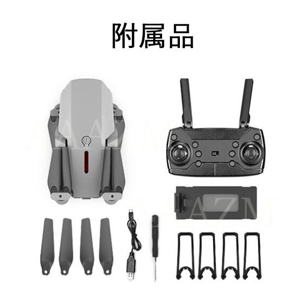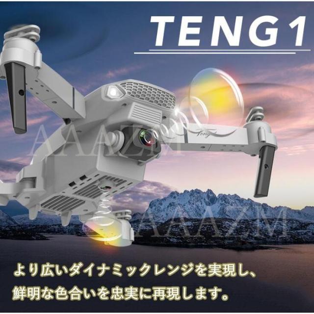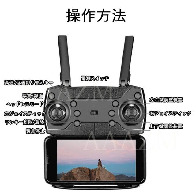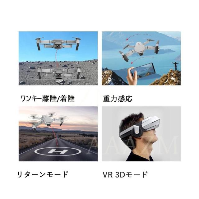 機能:前後/左右、ホバリング(高度保持)、ヘッドレスモード、三段スピード切替、写真/録画、ワンキー離陸/着陸、緊急停止、ジェスチャーで写真、ジエスチャーで録画、リターンモード、ウェイポイントモード、フリップモード、スマホ連動APP-RC、APP-RC重力センシング制御、VR3D体験