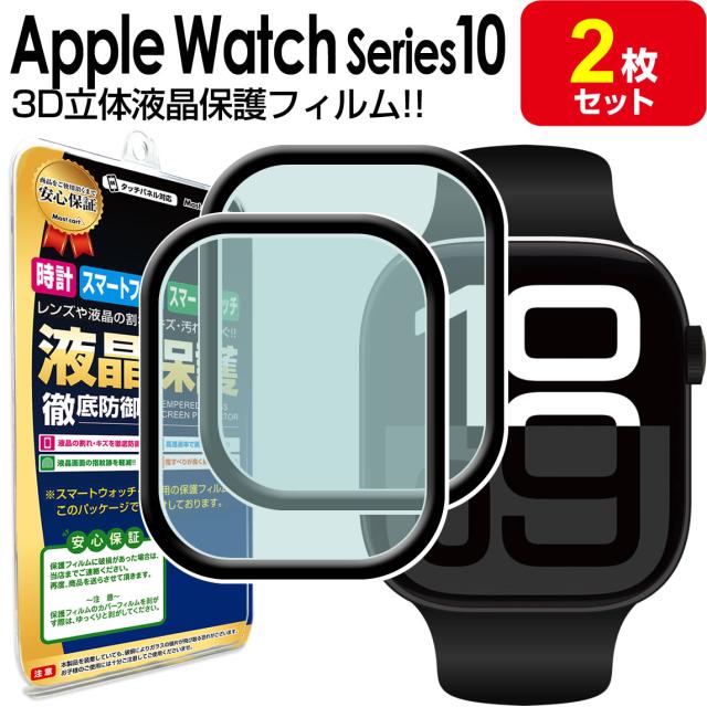 3Dフィルム 2枚セット Apple Watch 10 Series10 アップルウォッチ 10 保護 フィルム applewatch10 42mm 46mm 42 46 液晶 保護フィルム シート 透明 画面 カバー