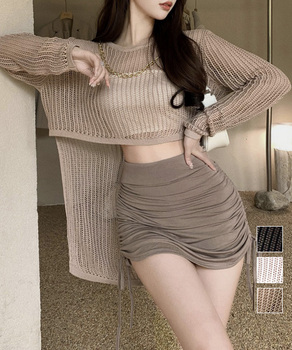 メッシュニット 透かし編みトップス 長袖 SK1980295