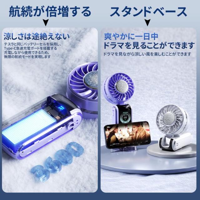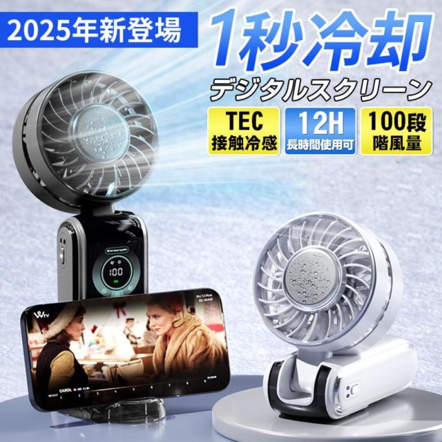 ハンディファン 扇風機 静音 小型 2025 大風量 100段階 小型扇風機 戸外 携帯扇風機 節電 軽量 Type-c充電式 冷却プレート エアコン風 LEDデジタル 暑さ対策