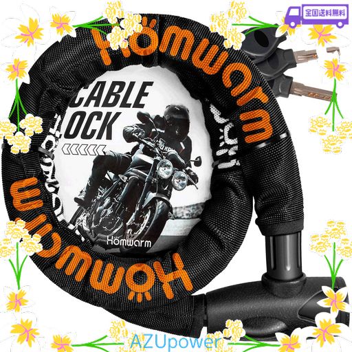 HOMWARM バイクロック チェーンロック バイク 自転車 ワイヤーロック Φ(直径)22MM×1200MM 頑丈 盗難防止 鍵3本セット (ブラック)