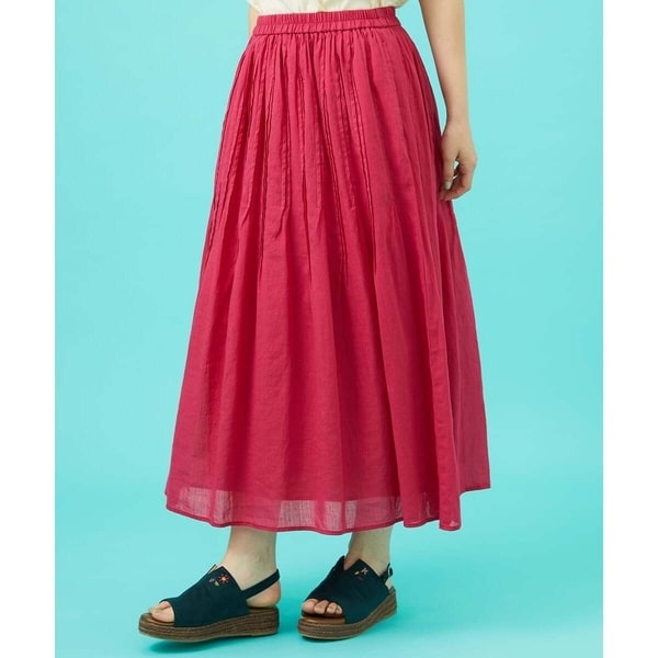 ナチュラルな雰囲気のスカート。裾にかけて広がるフレアシルエットです。腰の辺りにはぐるりと一周ピンタックを施したこだわりのデザイン。縦のラインですっきり見えを叶えます。ウエストは嬉しいオールゴム仕様。便利なポケット付きです。