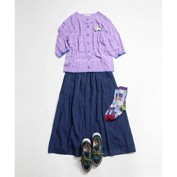 素材を活かした着回し力抜群なスカート。トップスにはホコモモラの柄物トップスとも好相性です。Tシャツと合わせた大人カジュアルコーデもオススメ。同素材のブラウス【GJBGB42200】とのセットアップも可能です。