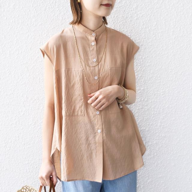 ノースリーブですがやや肩にかかるサイズ感で、腕周りを程よく隠してくれます。