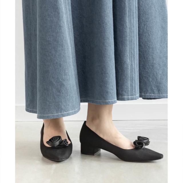【22−25.5】2WAY ローズモチーフフラットパンプス
