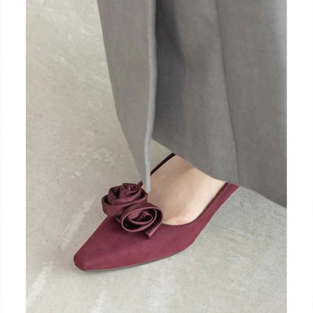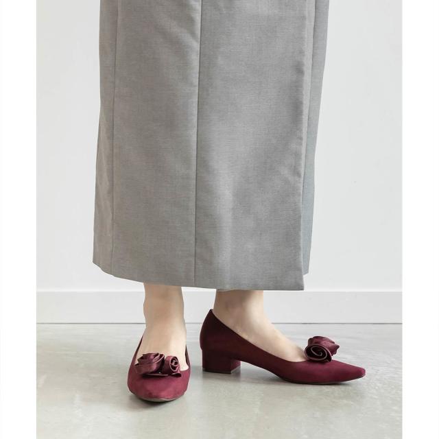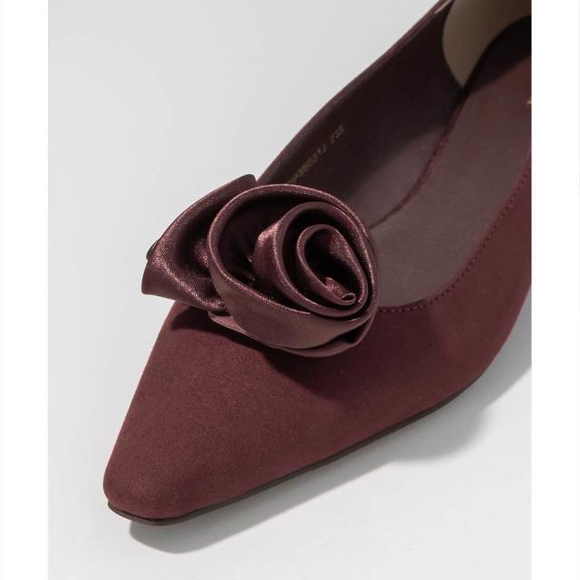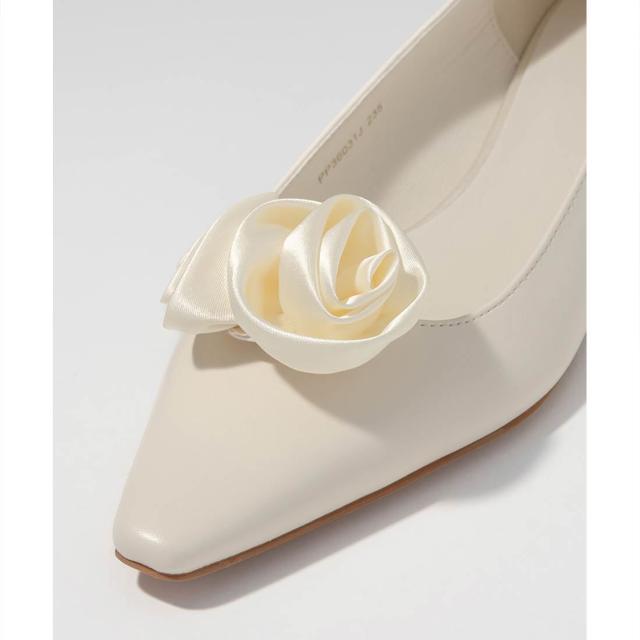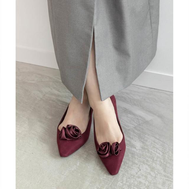 上品なローズモチーフが目を惹くフラットパンプス。