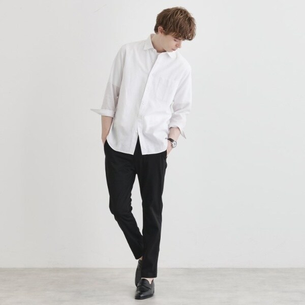 シャープなシルエットと適度なリラックス感を両立したデザインは、着こなし次第でお仕事にもプライベートにも活躍するパンツです。