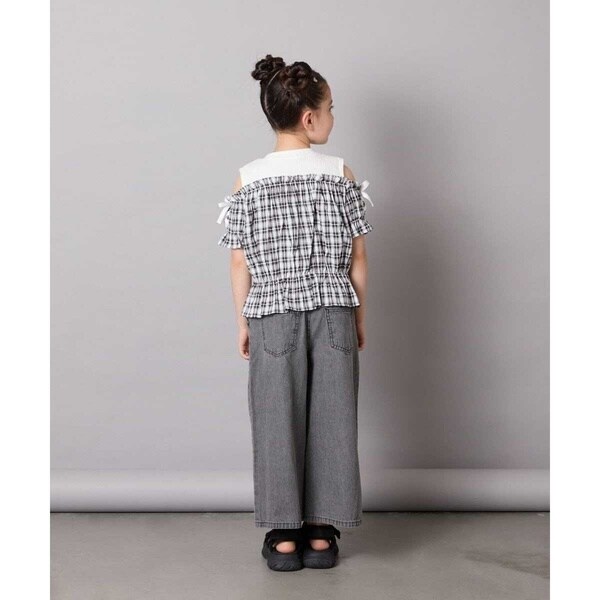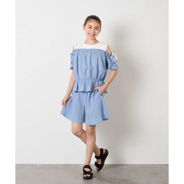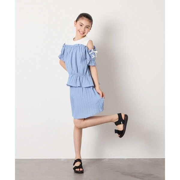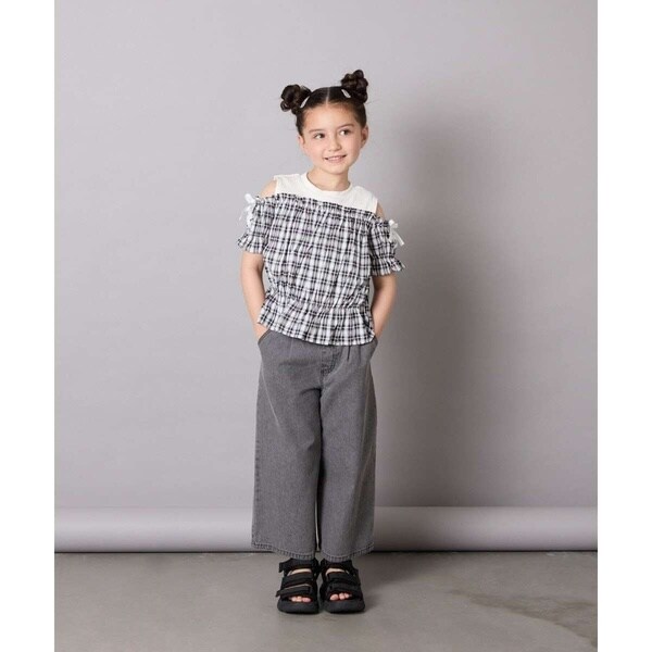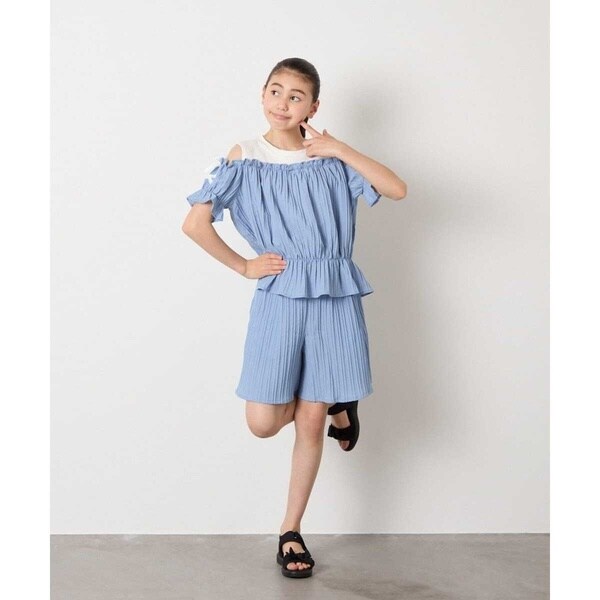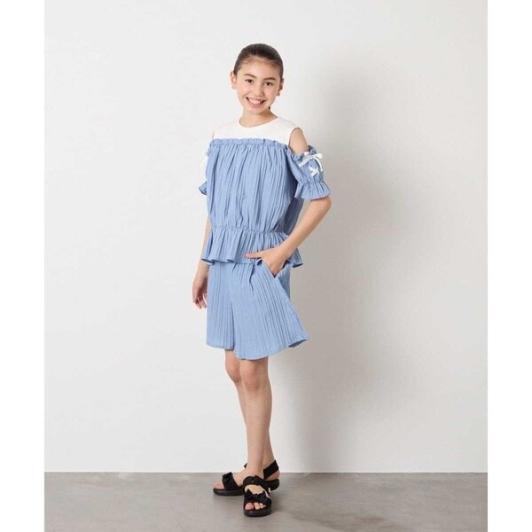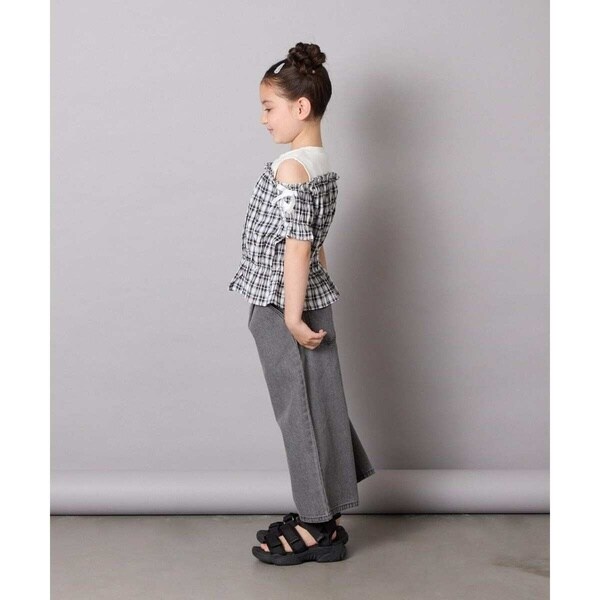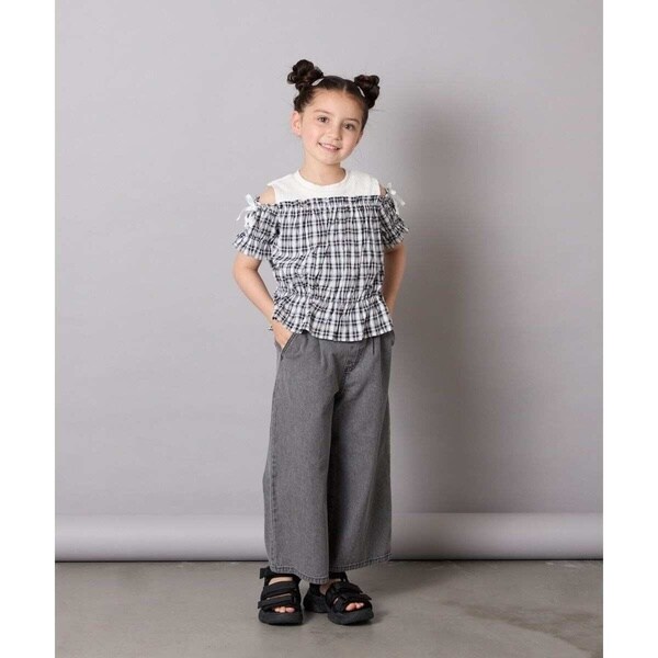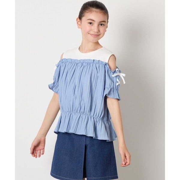 ・キッズに大人気!テレコのタンクトップとオフショルブラウスをドッキングしたレイヤード風デザイントップス。
