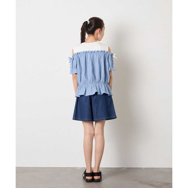 ・肌がちら見えする肩出しディティールがヘルシーさをプラス。
