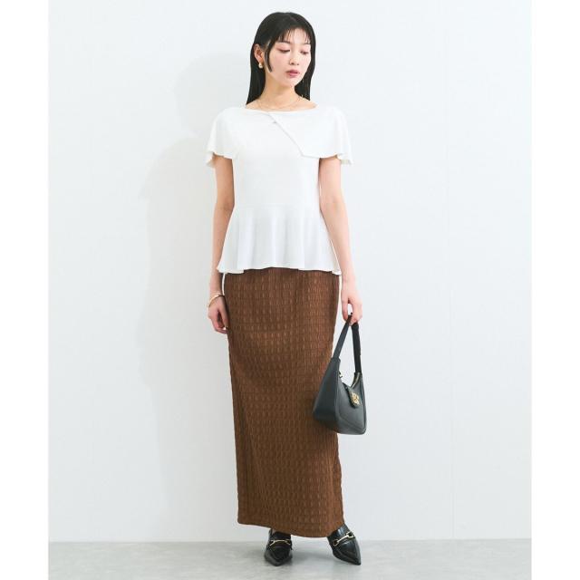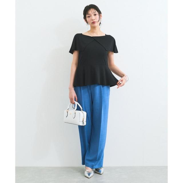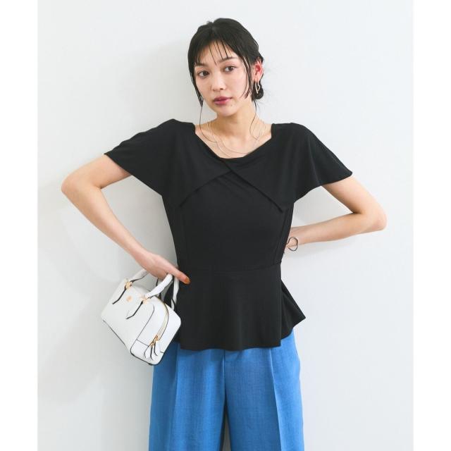 程よく身体に沿うシルエットながら、ペプラムと腰回りに斜めにタックを入れることでスタイルアップ!