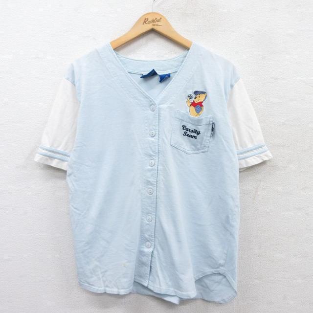 古着 半袖 ベースボール シャツ レディース 00年代 00s ディズニー DISNEY くまのプーさん コットン 水色他 中古 ブラウス ト 中古 古着