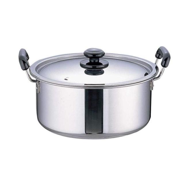 遠藤商事 業務用 プラ柄 厚板実用鍋 電磁調理器対応 本体18-0ステンレス フタ18-8ステンレス 日本製 (12.7 L, 直径 33 cm)