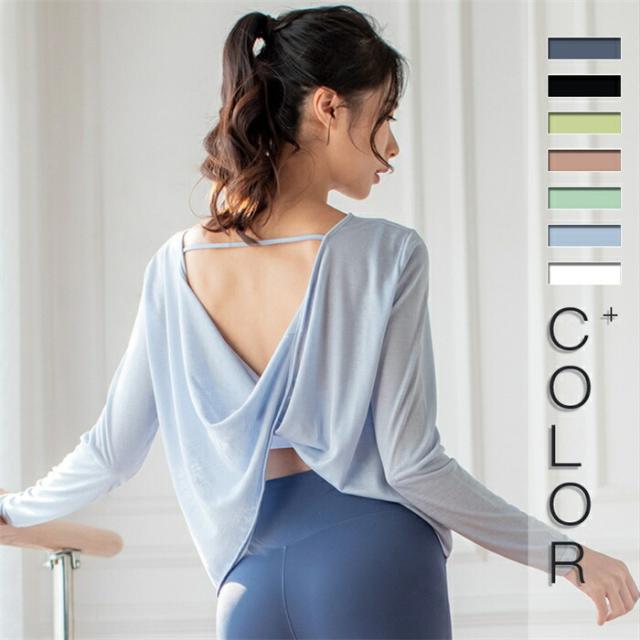 ヨガウェア トップス Tシャツ クロス 長袖 春秋 体型カバー 吸湿 吸汗 柔らか 伸縮性 レディース ジムウェア スポーツウェア フィットネスウェア おしゃれ 通気性 ランニングウェア