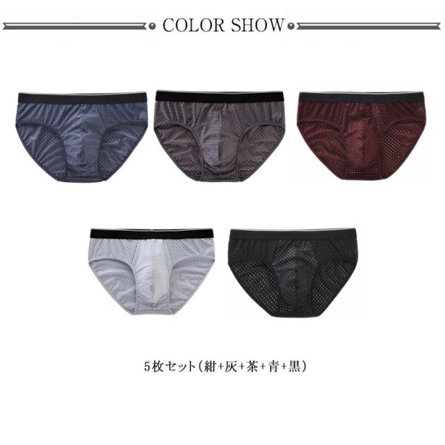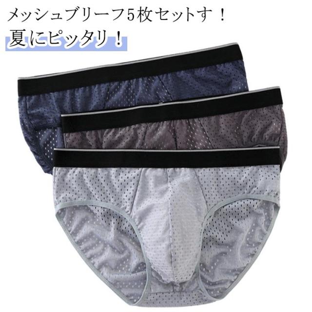 メンズ ブリーフ 5枚セット ブリーフパンツ ショーツ インナー 下着 男性 アンダーウェア メッシュ 薄手 無地 通気性 蒸れない 紳士 パンツ メンズ下着 セミビキニブリーフ 接触冷感 おしゃれ 大きいサイズ 紺 灰 茶 青 黒 送料無料