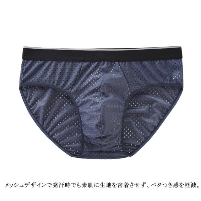 | 夏にピッタリ!メッシュブリーフ5枚セットす! メッシュデザインで発汗時でも素肌に生地を密着させず、ベタつき感を軽減。 冷感素材を使用、爽やかな着心地が持続します。 縫い目が少ないため、アウターに響きにくい。 | |