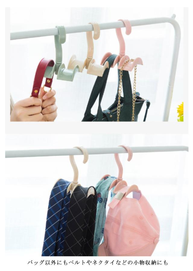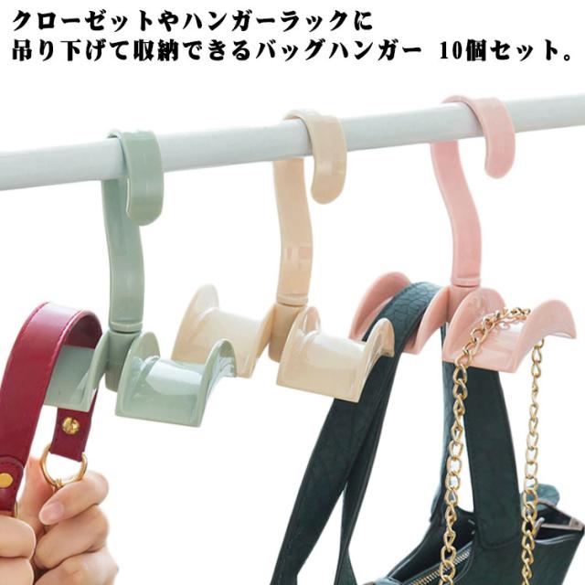 バッグハンガー 10個セット ダブルハンガー バッグフック 360 回転 クローゼット収納 吊り下げ収納 かばん ネクタイ ベルト 省スペース 整理整頓