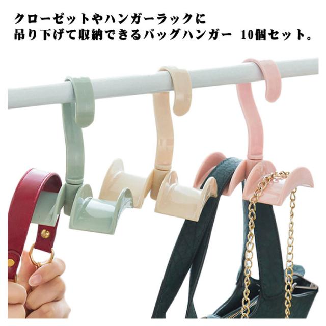 | クローゼットやハンガーラックに吊り下げて収納できるバッグハンガー 10個セット。 バッグ以外にもベルトやネクタイなどの小物収納にも 限りあるスペースの有効活用に ※同色10個セットでの販売となります。 | |