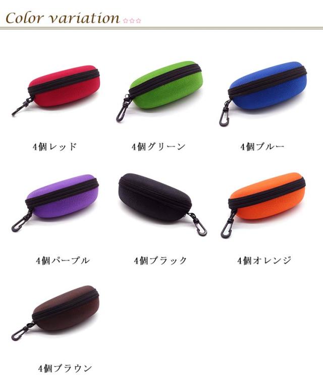 4個セット メガネケース サングラスケース フック付き 大型 大きめ ハードケース 無地 スポーツ アウトドア 旅行 携帯 軽量 ファスナー付き シンプル