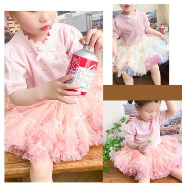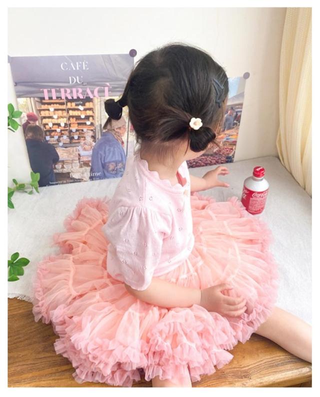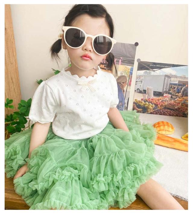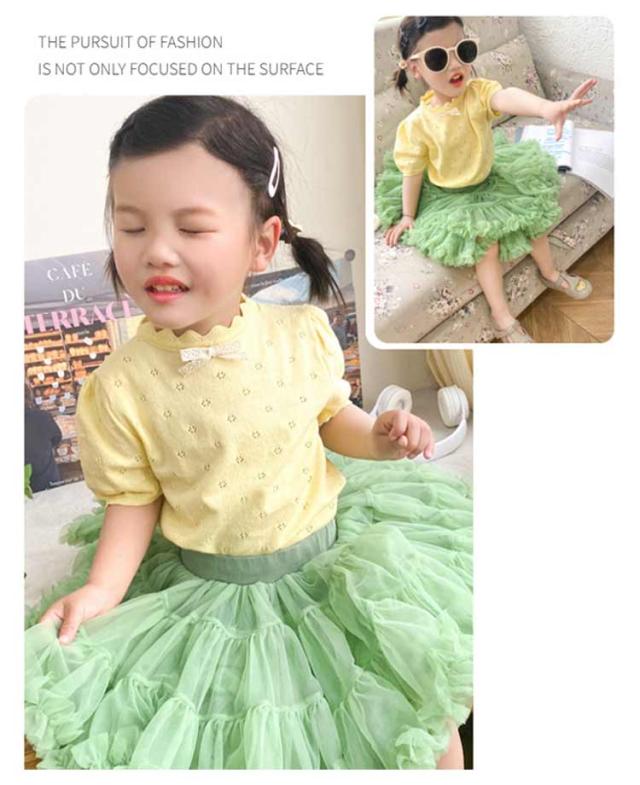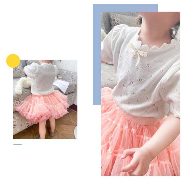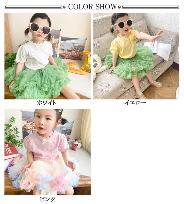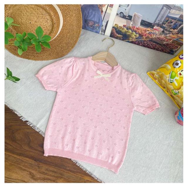 キッズ ベビー 女の子 トップス ニットトップス 半袖 レース リボン 透かし編み ニット コットン 半袖 パフスリーブ 可愛い 90cm 100cm 110cm 120cm 130cm 140cm 150cm 160cm 子供服 春 夏 秋 送料無料