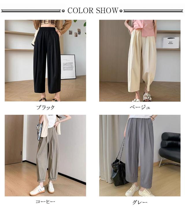 バルーンパンツ パンツ レディース サルエルパンツ ロング丈パンツ ワイドパンツ ハイウエスト 春 夏 ハロンパンツ イージーパンツ ロングパンツ コクーンパンツ ウエストゴム ボトムス 8分丈 カジュアル ゆったり 薄手 お洒落 部屋着 送料無料