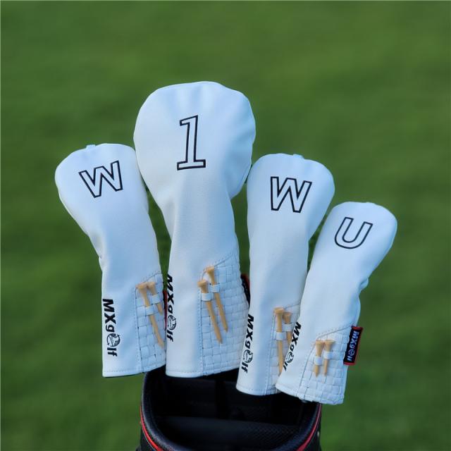 4点セット ティー付き ヘッドカバー PUレザー ドライバー フェアウェイウッド ユーティリティ カバー cover010