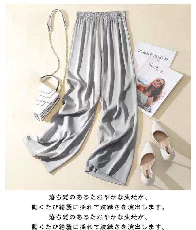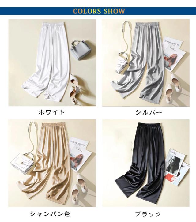 サマー サテンパンツ ワイドパンツ レディース シルクリアル ボトムズ 春 夏 ボトムズ パンツ 動きやすい ウエストゴム 微光沢 美脚 ハイウエスト ゆったり 着痩せ 美脚 通勤 20代 30代 40代