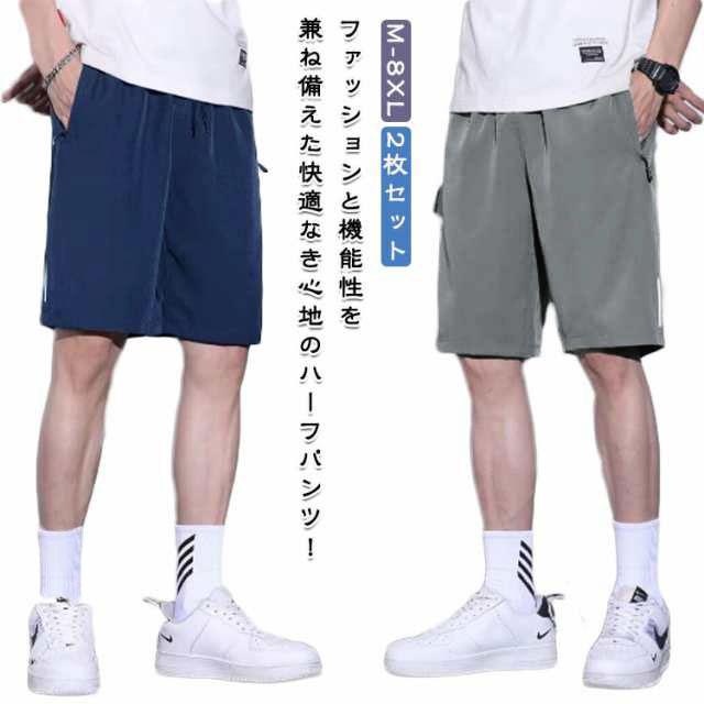 大きいサイズ 吸汗速乾 メンズ 2枚セット!接触冷感 涼しい ハーフパンツ 無地 短パン 半ズボン ジュニア 2枚セット!接触冷感 スポーツ 夏物 ゴルフパンツ バスパン バスケパンツ ゴルフウェア カジュアル イージーパンツ