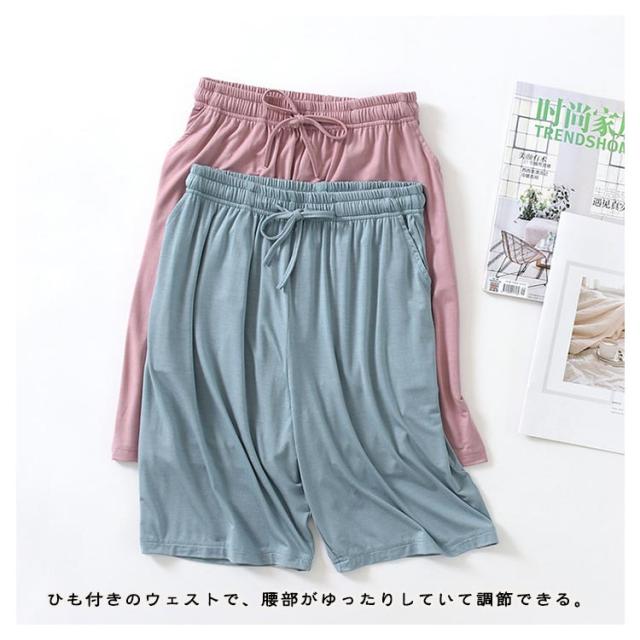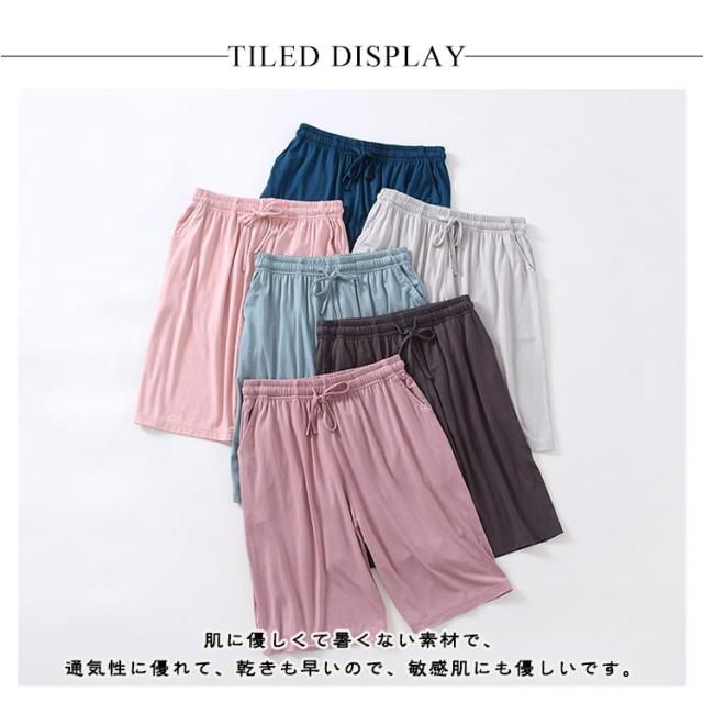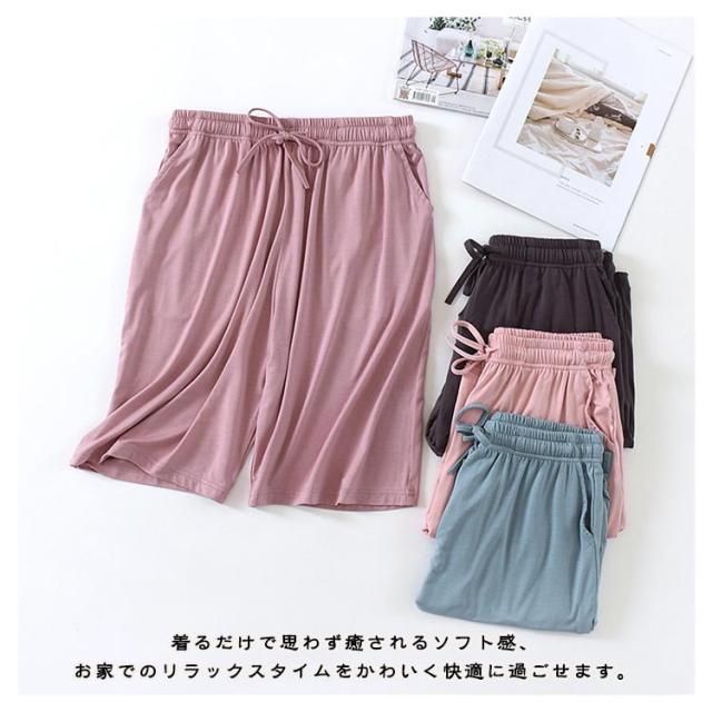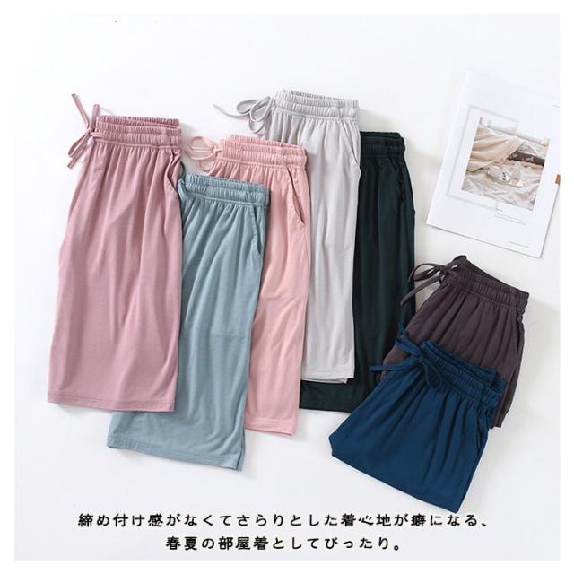 ハーフパンツ パジャマ 5分丈 部屋着 ルームパンツ ボトムス ショートパンツ レディース ナイトウェア 夏用 無地 ルームウェア リラックス 春夏 全8色 ウエストゴム ルームパンツ ゆったり