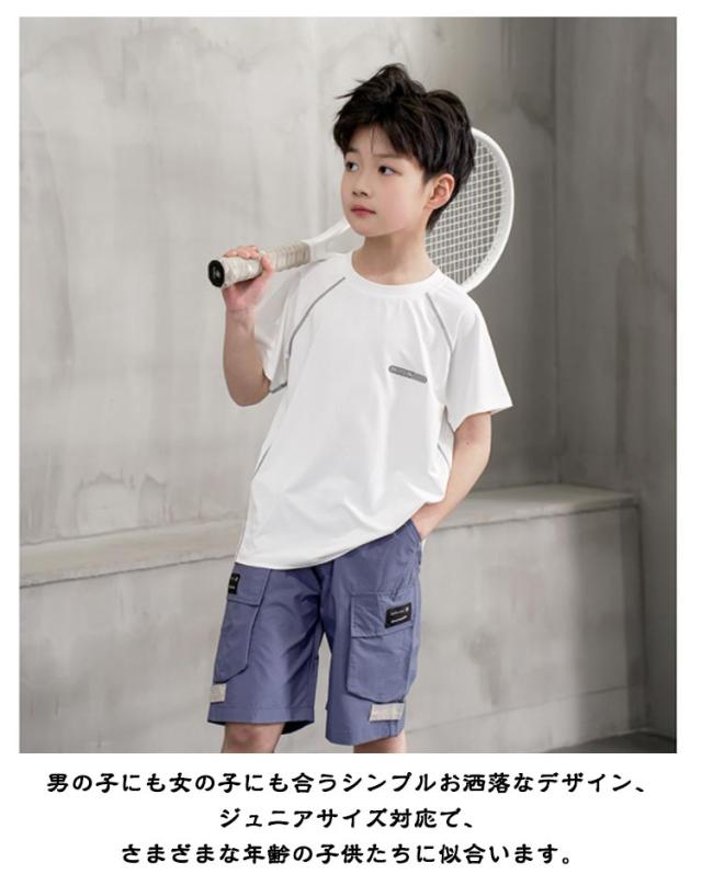 | いつもサラサラ涼しいスポーツウェア。 テニス、サッカー、バスケなどスポーツに最適な接触冷感速乾Tシャ。 接触冷感、速乾機能が付いた夏のアクティブなシーンにピッタリなTシャツです。 子供たちの毎日の運動や遊びに最適なスポーツtシャツです。 接触冷感ひんやりとしたはき心地です。暑い日を涼しく過ごしたいお子様におすすめです。 動きやすく、涼しげなデザインで体育の時間に最適の半袖トップスです。 男の子にも女の子にも合うシンプルお洒落なデザイン、ジュニアサイズ対応で、さまざまな年齢の子供たちに似合います。 スポーツ用はもちろん、おうち着でも、ちょっとしたお出掛け用などシーンによって様々な着こなしを楽しめます。 | |
