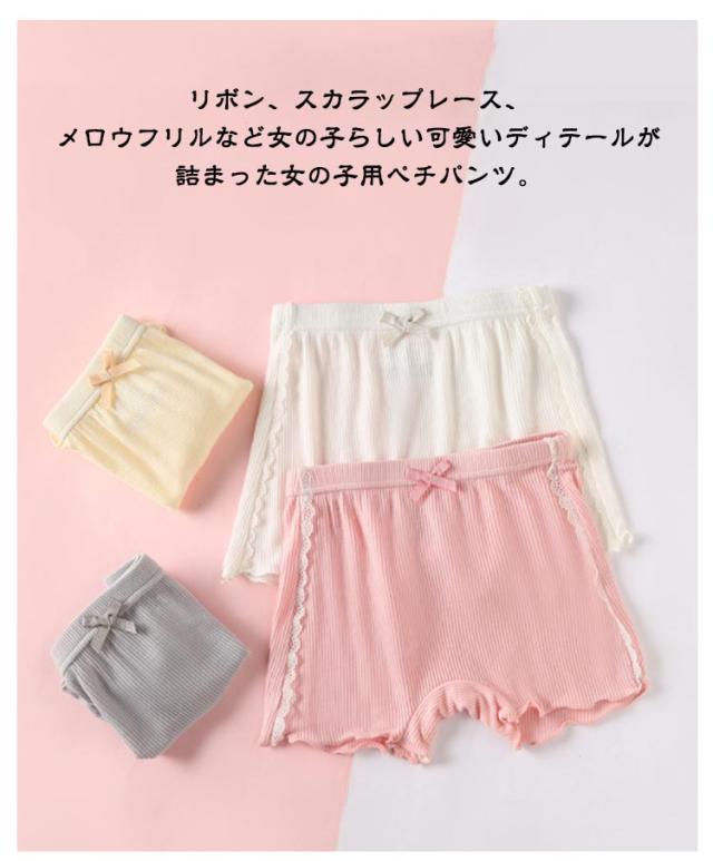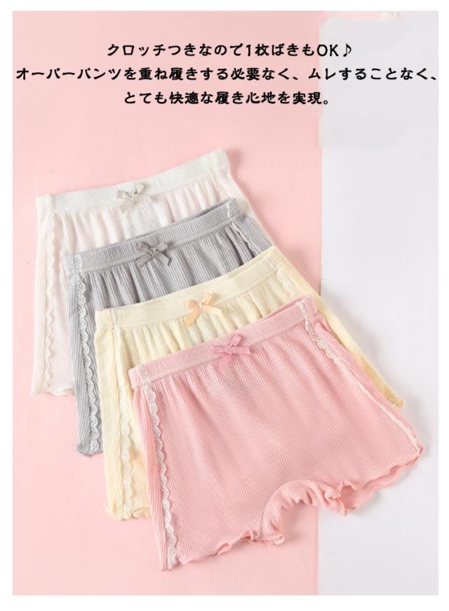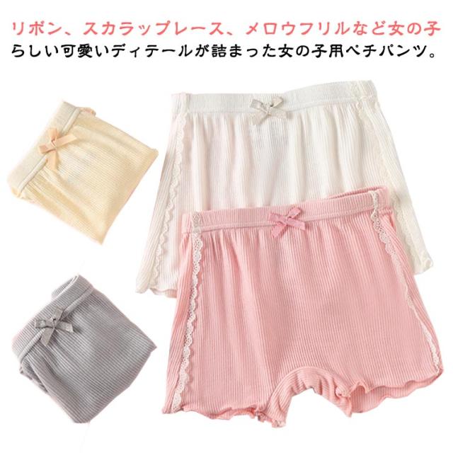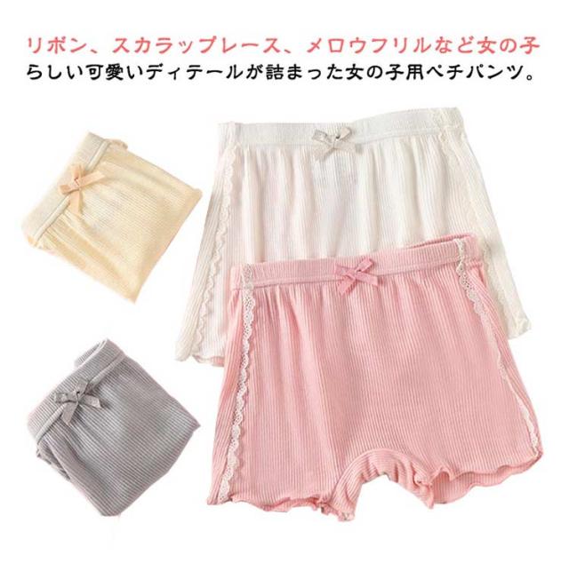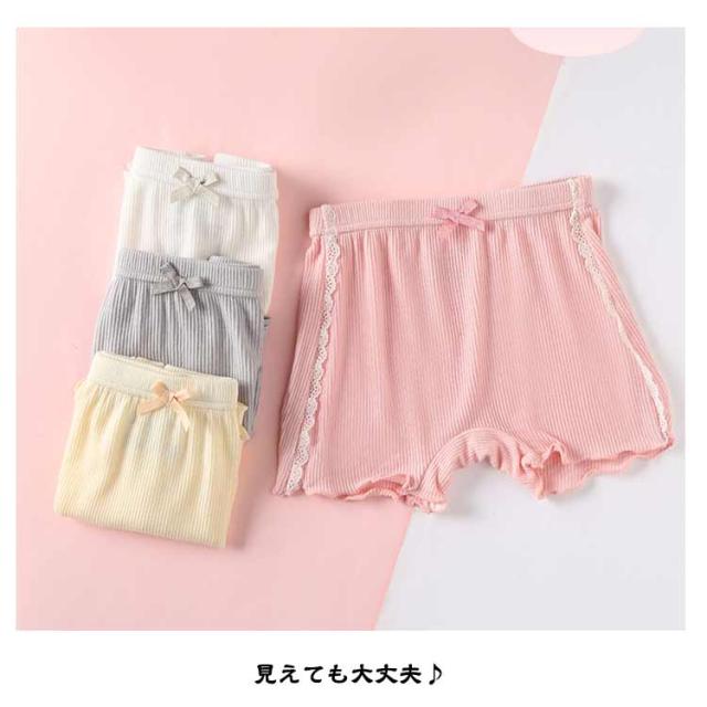 女の子 かわいい オーバーパンツ ペチパンツ 下着 2in1 ジュニア ショートパンツ インナーパンツ ショーツ キッズ こども 3分丈 レース ショーツ リボン 3枚セット 100cm 160cm リブ スパッツ