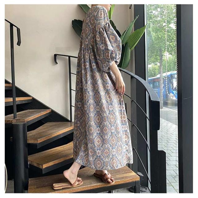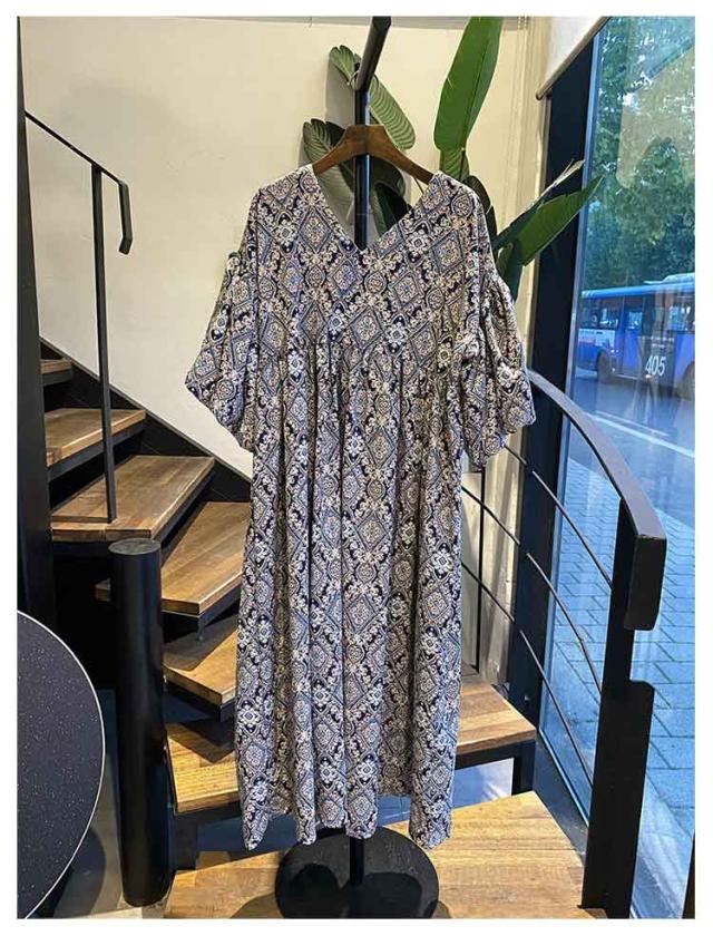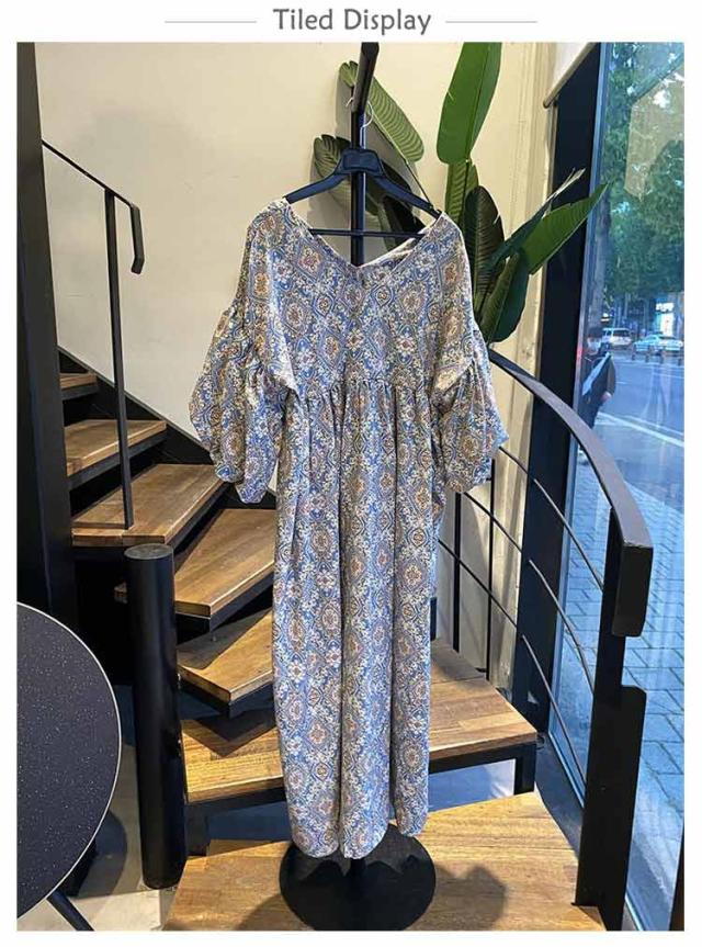 | ふんわりボリュームが大人可愛いエスニック柄ワンピース 丸みのあるボリューム袖とウエストにたっぷリギャザーを入れたデザインが魅力的。 首元は広めのvネックなのでスッキリとした印象です。 バックデザインもV開きで、後ろ姿も抜け感あるきれいなシルエットに。 ドロップショルダーで、ほど良い抜け感を演出。 ゆったりとしたシルエットなので、気になるウエストや腕など体型カバーを叶えます。 一枚で着るだけでサマになるエスニック柄のワンピースです。 | |