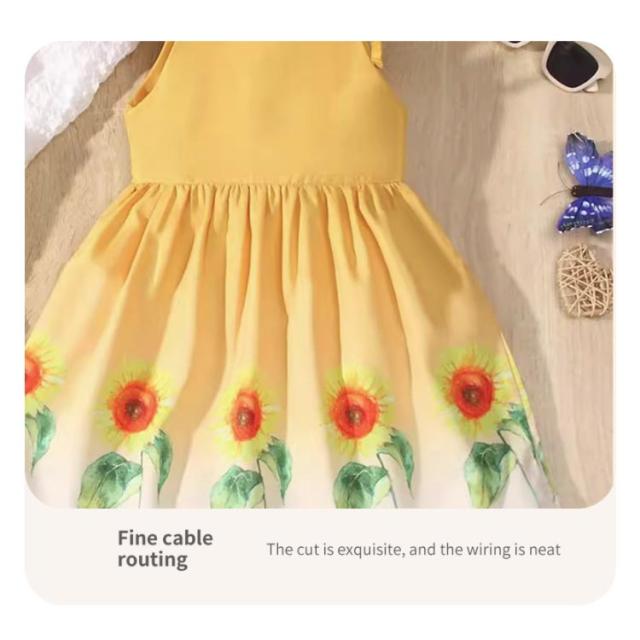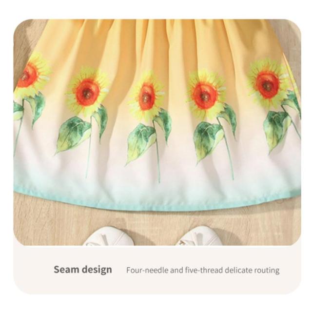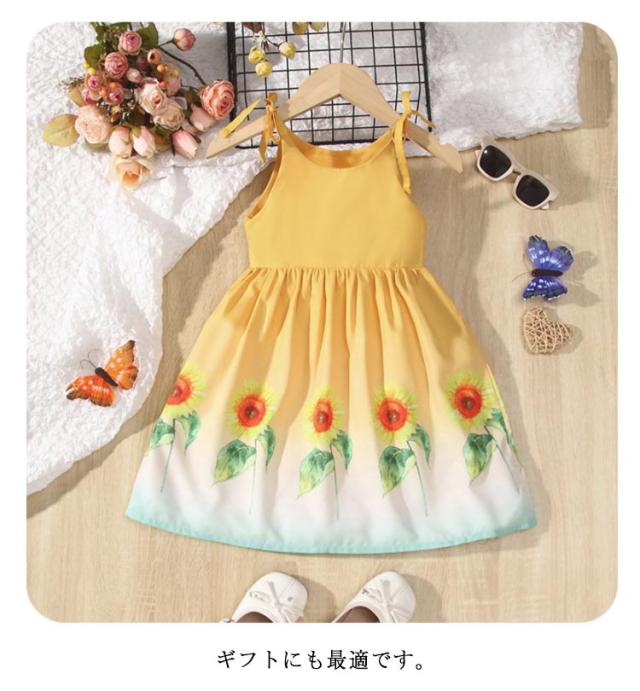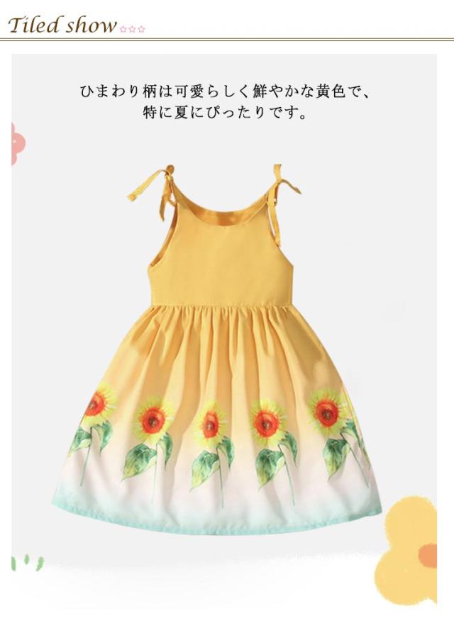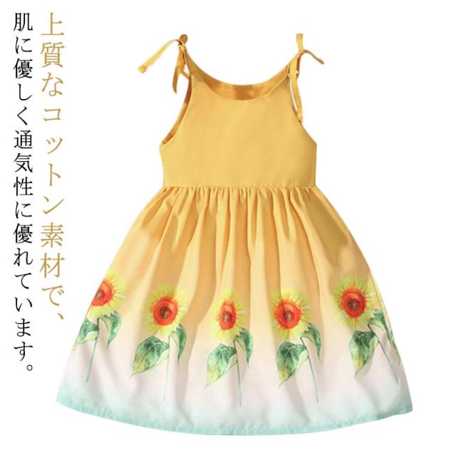 ワンピース 肩紐 ノースリーブワンピース こども服 イエロー ショルダーストラップ キッズ ガールズ ベビー ひまわり柄 女の子 ジュニア ワンピ かわいい 花柄 ワンピース 子ども服