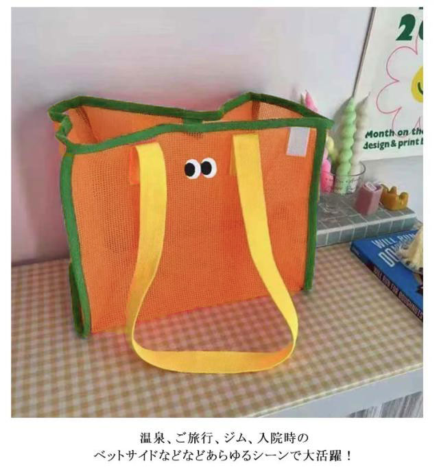 | メッシュで通気性がバツグンなメッシュトートバッグです。 化粧品、スキンケアからネイルケアまで細かな身の回り品も一緒に収納しちゃえます。 とても軽いので畳んで収納すれば旅行や出張などにも手軽に持って行けます。 温泉、ご旅行、ジム、入院時のベットサイドなどなどあらゆるシーンで大活躍! | |