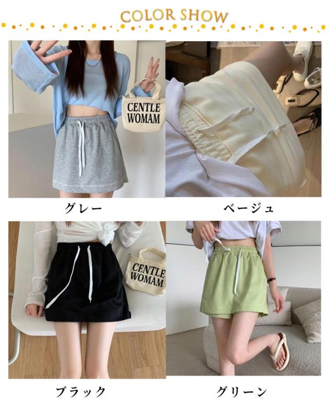 スカート インナー付き パンツ 脚長 スウェットスカート ミニ丈 ミニスカート ミニスカ ショートパンツ ストレッチ スエットスカート ハイウエスト ウエストゴム 細見え ボトム スウェットスカート スカパン キュロット ストレッチ ボトムス レイヤード 部屋着