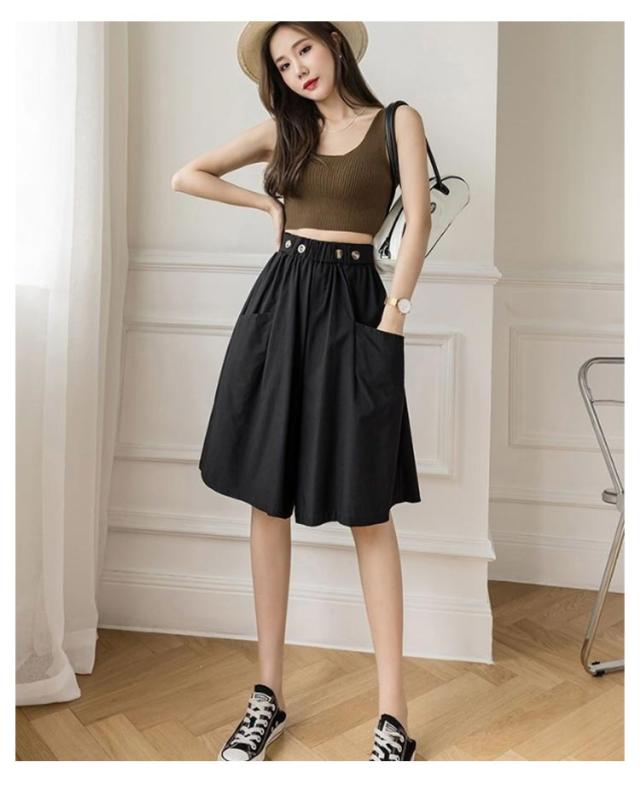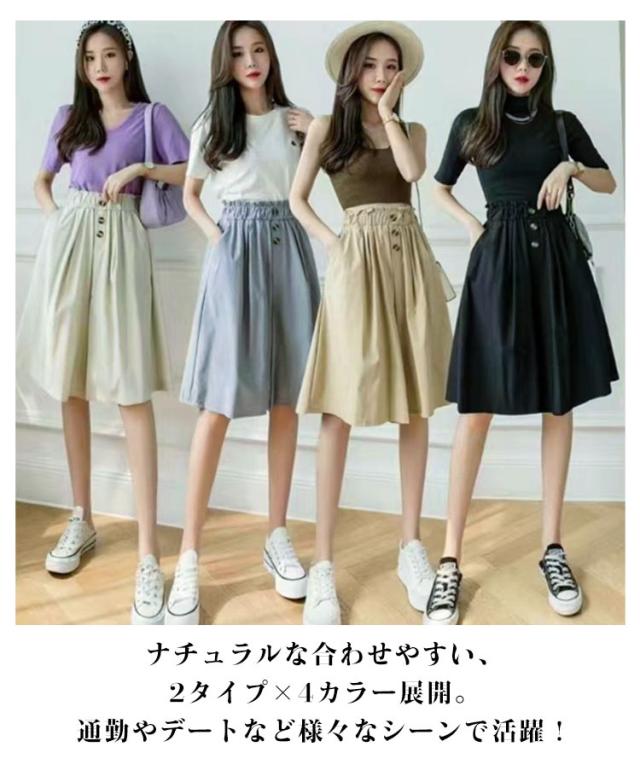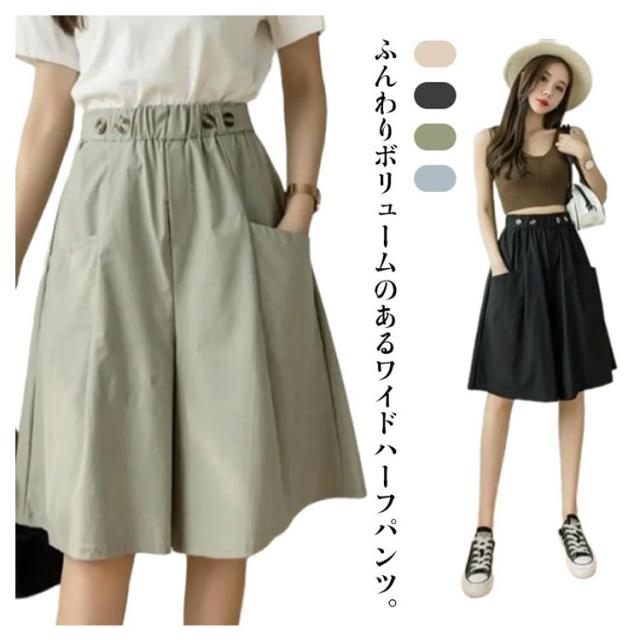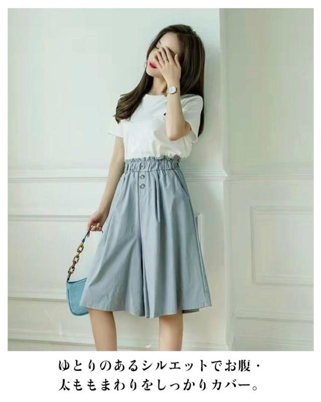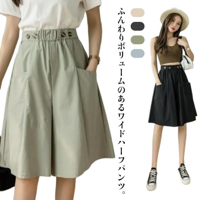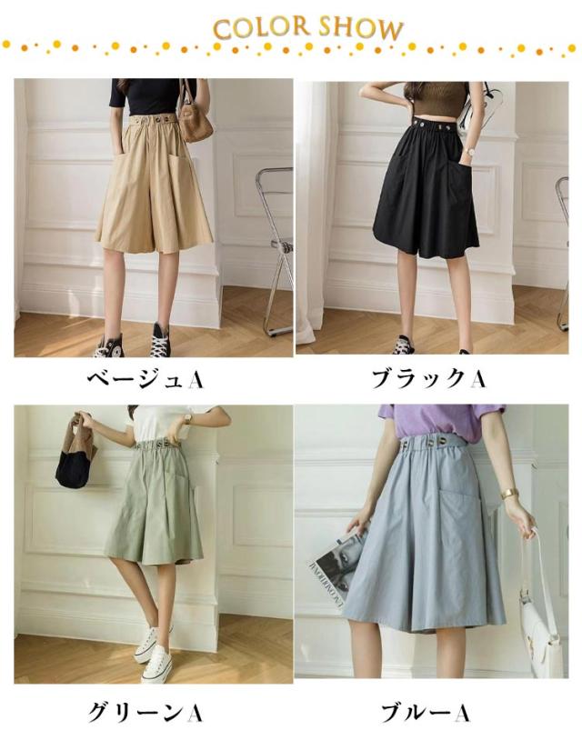 ボトムズ ショートパンツ ワイドパンツ ガウチョパンツ ハーフパンツ 大きいサイズ 夏 ハーフパンツ 膝丈 レディース 涼しい 大きいサイズ ズボン ワイド スカーチョ aライン ゴム ハイウエスト 無地 薄手 ゆったり 体型カバー